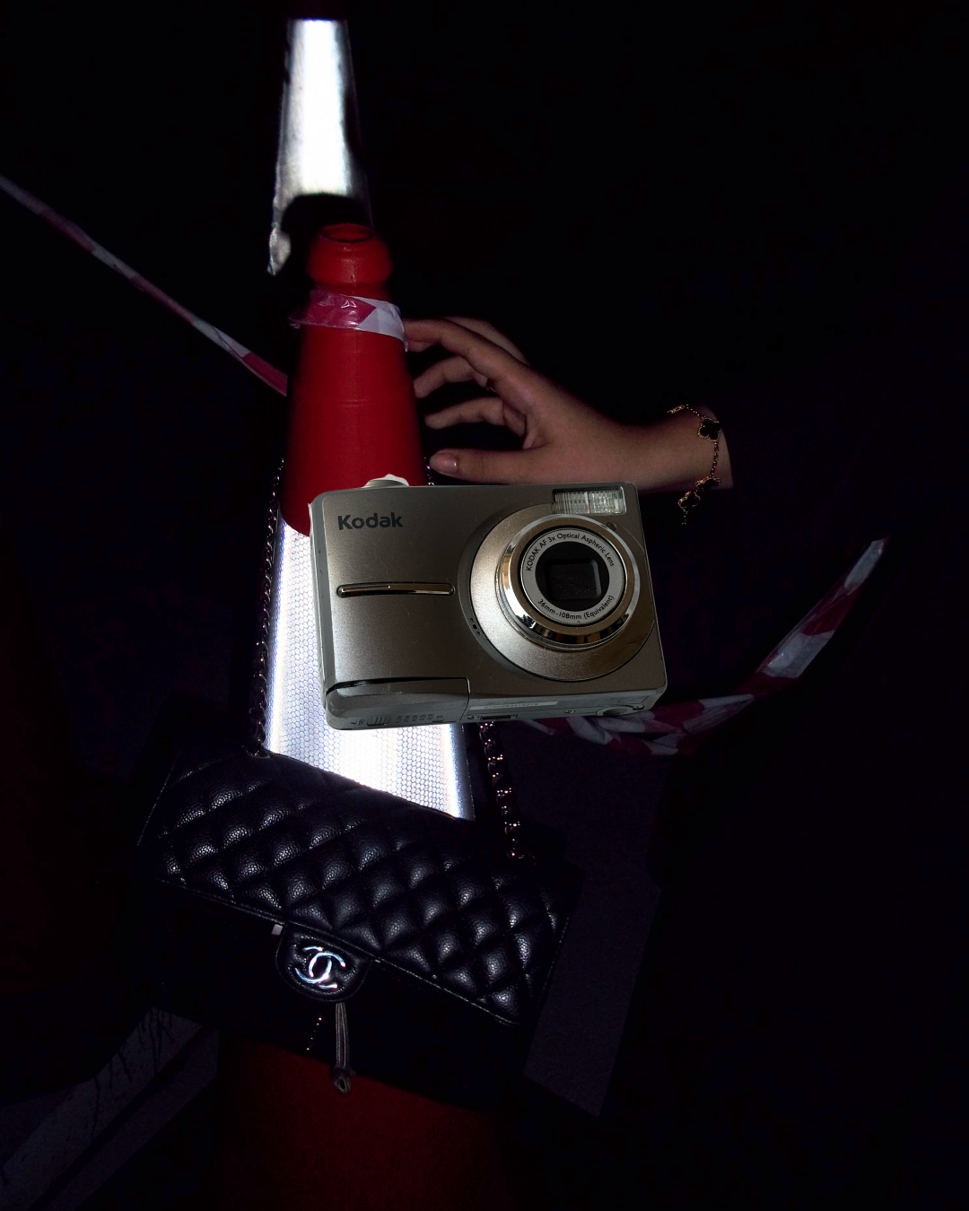 Camera, SD card, SD card reader, universal charger, strap beads and stickers to decorate